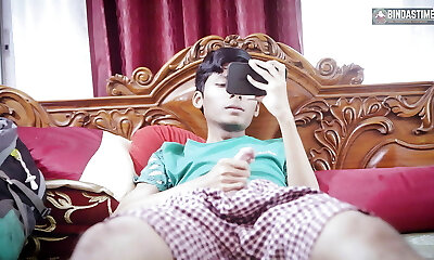 My stepbrother was Milking off in VR. I got horny as I spotted his cock getting bigger...