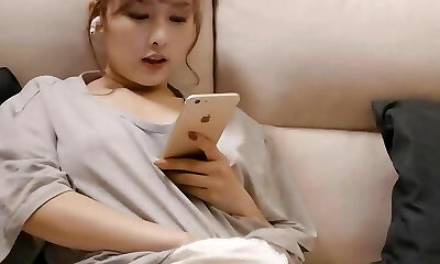 Blonde mega-bitch young Asian girl with sexy lingerie teasing brother and her wet pussy got romped so hard
